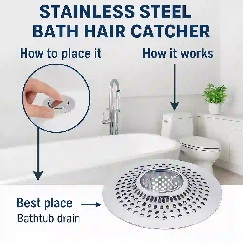 ![]() | TubShroom | Product Name: TRAPMATE Anti-Slip Stainless Steel Toilet Hair Catcher Silver. Build Quality: Durable metal body with smooth edges. High Drainage Efficiency: Channels water without pooling. Easy Cleaning: Quick rinse and wipe routine. Anti-Slip Stability: Holds steady even in wet areas. Wide Compatibility: Fits many sink and shower openings. Reusable Design: Built for long-term home use. Clog Prevention: Works like a drain cleaner to stop buildup. Hygienic Operation: Helps keep the basin area clean. Fast Installation: Simple drop-in setup. Price Range: US$7 – $12. | |