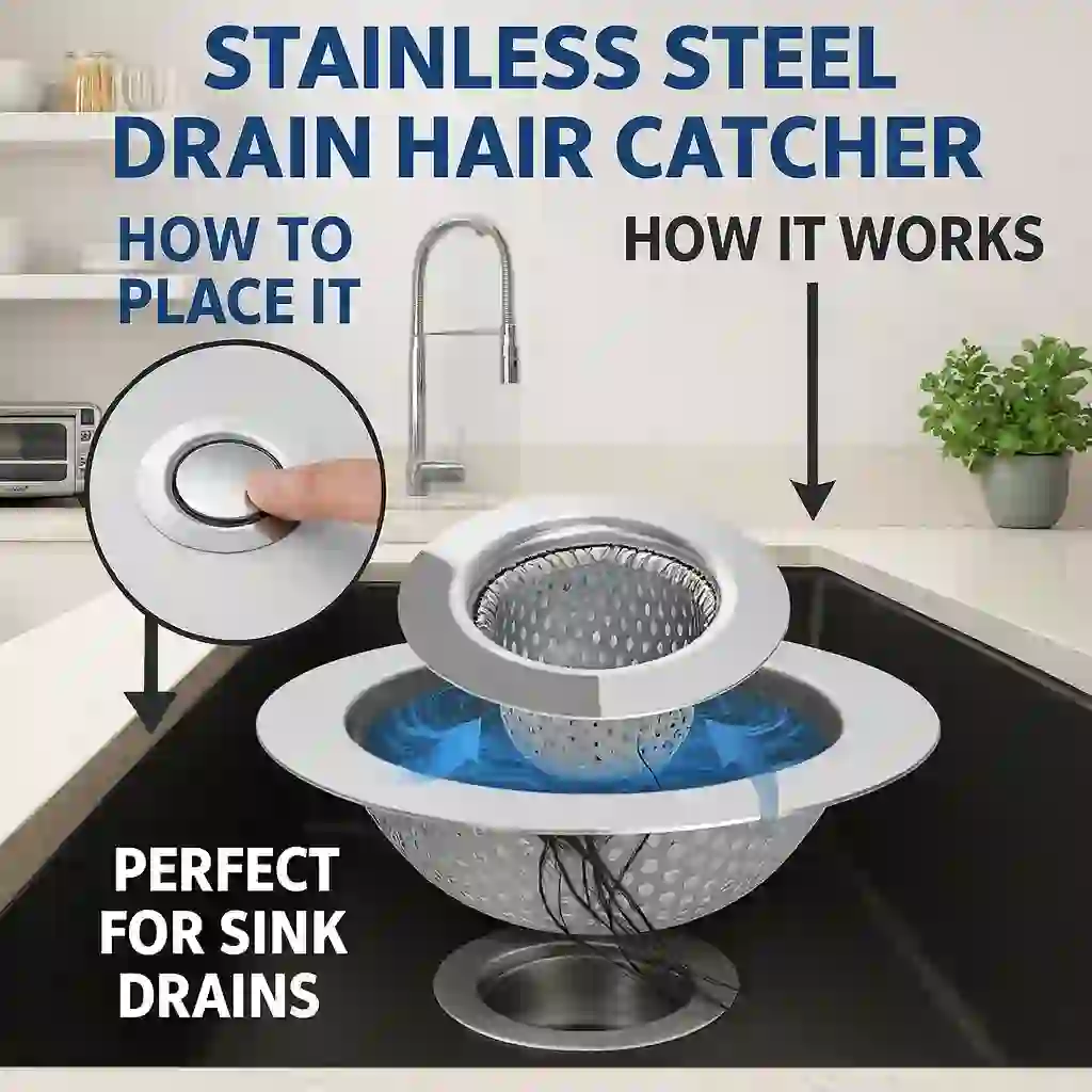 LEKEYE | Product Name: LEKEYE Hair Catch Drain Strainer, Stainless Steel & Silicone. Build Quality: Steel top paired with a flexible silicone base. High Drainage Efficiency: Keeps water moving without pooling. Easy Cleaning: Quick rinse for smooth upkeep. Anti-Slip Stability: Silicone grip helps it stay in place. Wide Compatibility: Fits many standard sinks. Reusable Design: Built for long-term use. Clog Prevention: Forms a gentle hair trap before the line. Hygienic Operation: Reduces residue in the basin. Fast Installation: Drops in place with minimal effort. Price Range: US$8 – $14. | ||